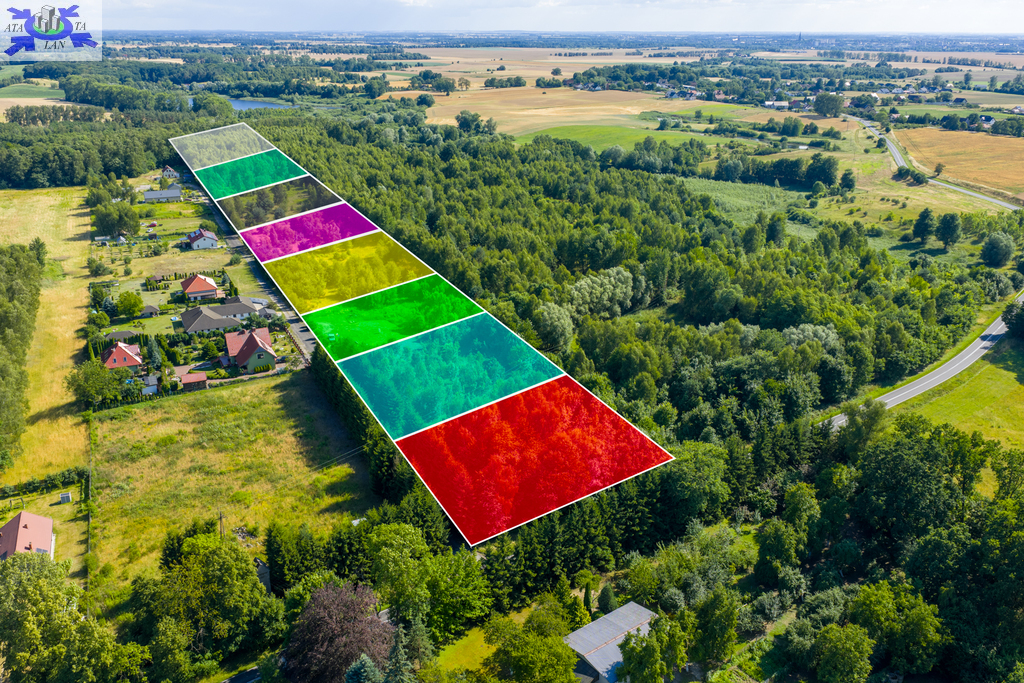 Metraż działek od 4101 m2 do 4685 m2.