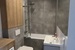Łazienka z kabiną prysznicową pięknej glazurze i terakocie.