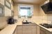 Kuchnia osobna, z oknem, na podłodze terakota, na ścianach pasek glazury oraz gładź.