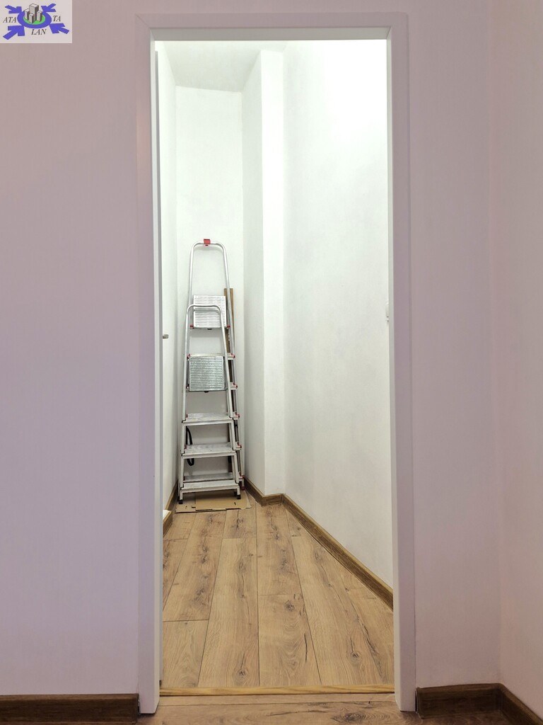 * przedpokój z wnęką, którą można w prosty sposób zabudować tworząc dużą szafę z pralką, suszarką i półkami umieszczonymi w głębi za ubraniami