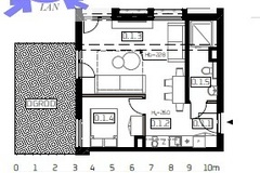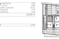 Prezentowany apartament ma powierzchnię 42,08 m2, ogród 17,67 m2, taras 10,73 m2