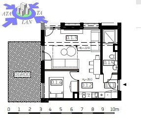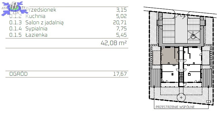Prezentowany apartament ma powierzchnię 42,08 m2, ogród 17,67 m2, taras 10,73 m2