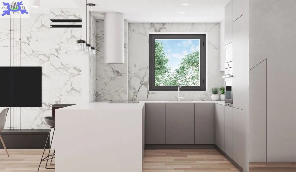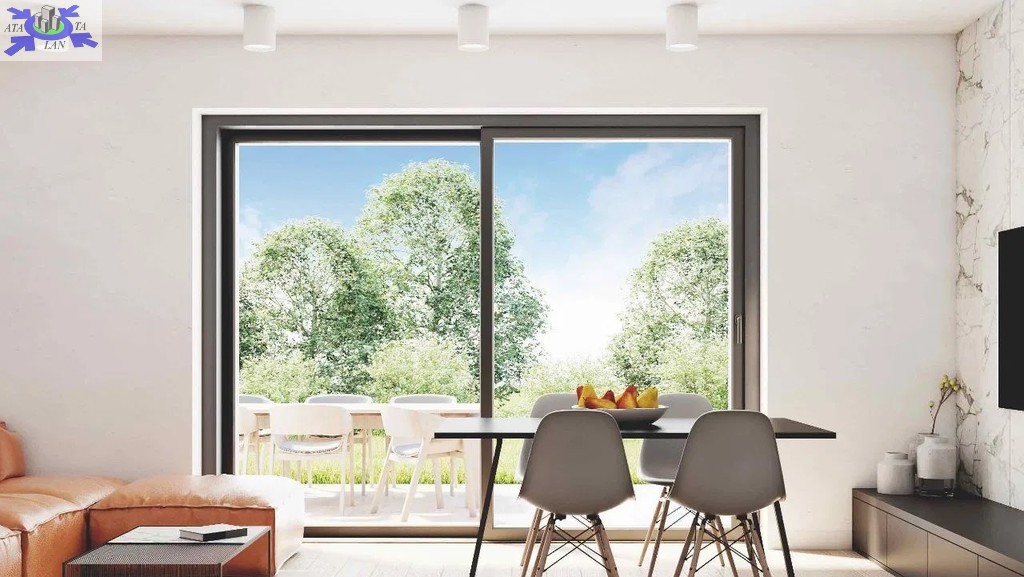 - Jasny przestronny salon z aneksem kuchennym o powierzchni 24,45 m2 z bezpośrednim wyjściem na taras o powierzchni około 24 m2