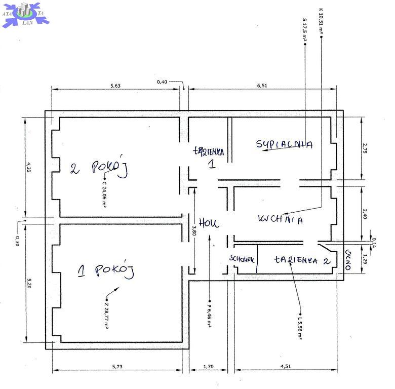 - 3 pokoi o powierzchni 27m2, 22m2, 14m2