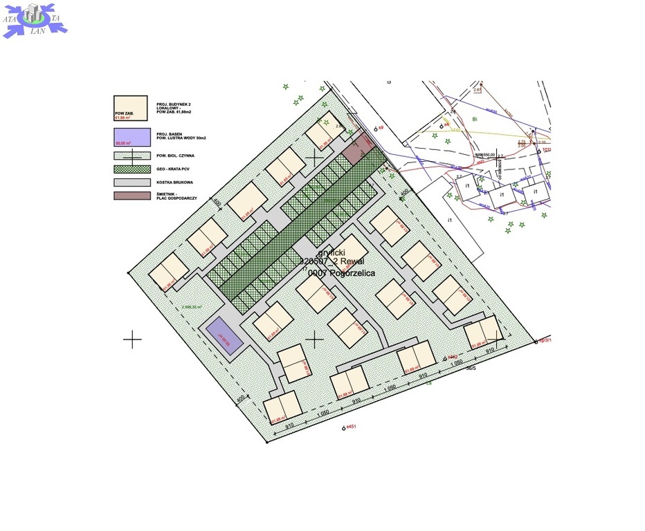 Pełna dokumentacja, obliczenia, koncepcja zabudowy dostępne na życzenie.