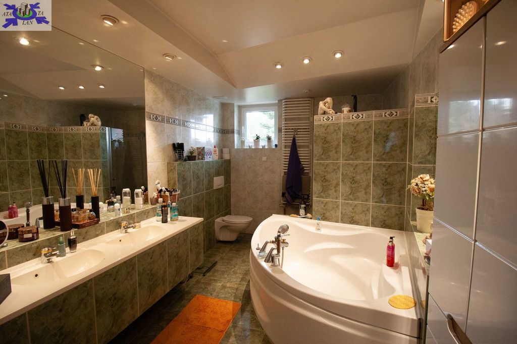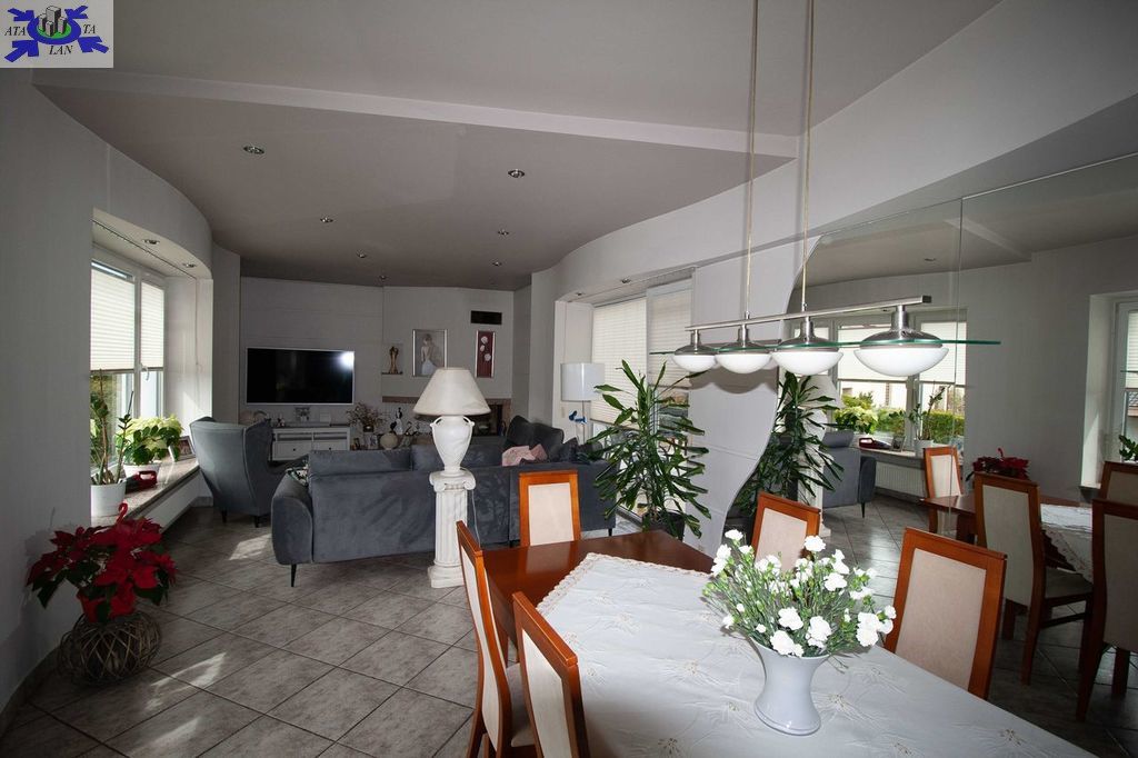 Budynek został wykonany w 1995 w technologii murowanej z cegły. Nieruchomość zadbana, kilka lat temu po generalnym odświeżeniu. Składa się z 7 pokoi, kuchni i 3 łazienek. Jest całkowicie podpiwniczona. Nieruchomość zadbana, wykończona z gustem, nie wymaga dodatkowych nakładów. Działka nominalnie o powierzchni 399 m2 powiększona o ok 150 m2 została zagospodarowana licznymi nasadzeniami - krzewami i drzewami.