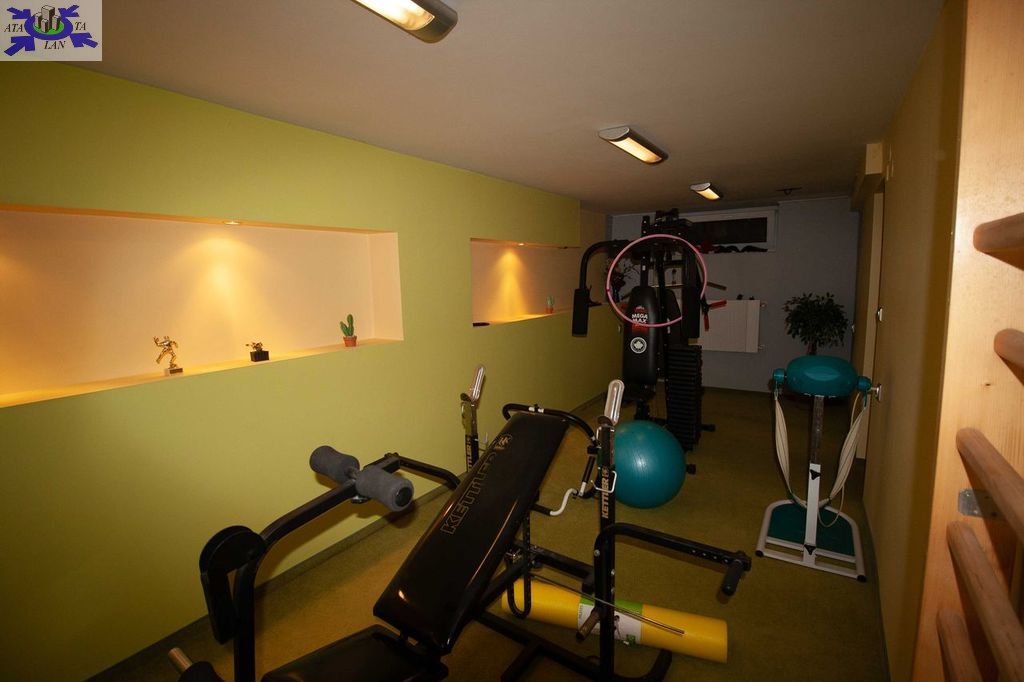 - PODPIWNICZENIE - 136 m2 znajduje się tu garaż na 2 samochody o powierzchni 42 m2, kotłownia 15,4 m2 z piecem Buderus, sala fitnes 19 m2, pralnia, pokój kinowy - 19 m2, korytarz o powierzchni 25 m2.