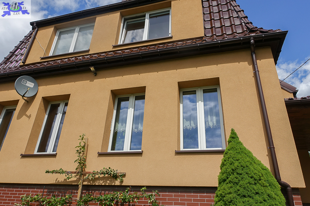 Nowa izolacja budynku (budynek został odkopany na głębokość 1,5 i zaizolowany, na wysokość 1,5 m), ocieplenie 10 cm styropian i cegła klinkierowa, powyżej ocieplenie 15 cm styropianem. Ocieplenie wykonano w 2018 roku.