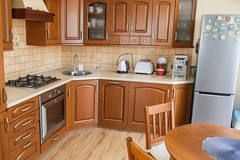 Jasna, duża kuchnia z wyjściem na prywatny ogródek - idealne miejsce na poranną kawę lub letnie obiady w plenerze