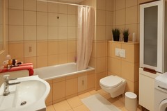 Na podłogach panele w idealnym stanie, w łazience i WC płytki