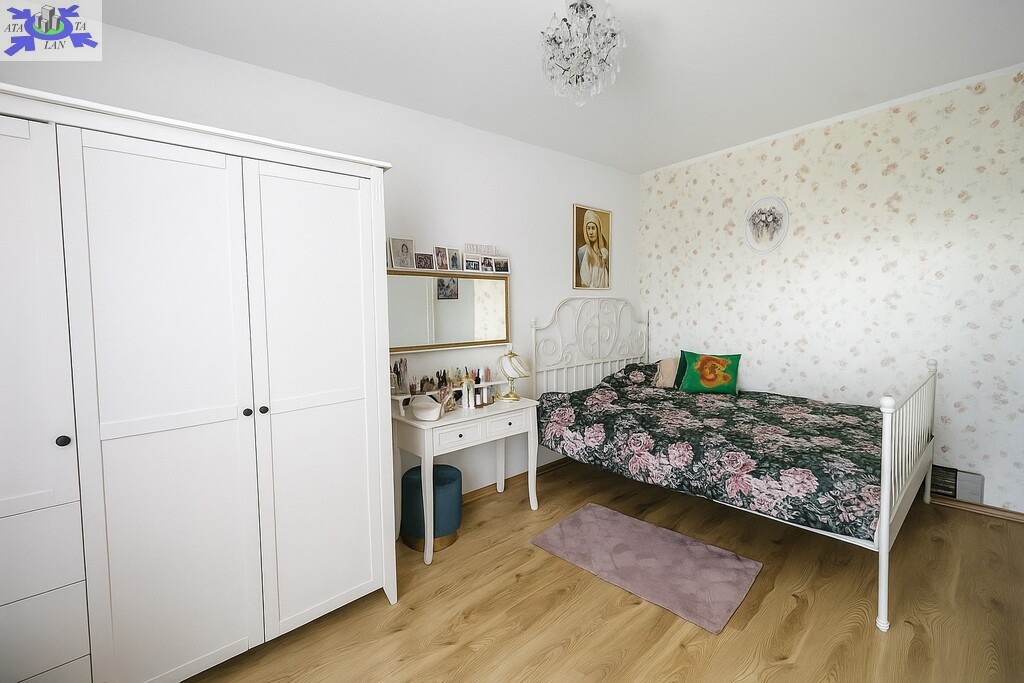 Na podłogach znajdują się panele w doskonałym stanie, a w łazience i WC estetyczne płytki ceramiczne. Okna PCV oraz eleganckie, drewniane drzwi wewnętrzne podkreślają spójny i ponadczasowy charakter wnętrza.