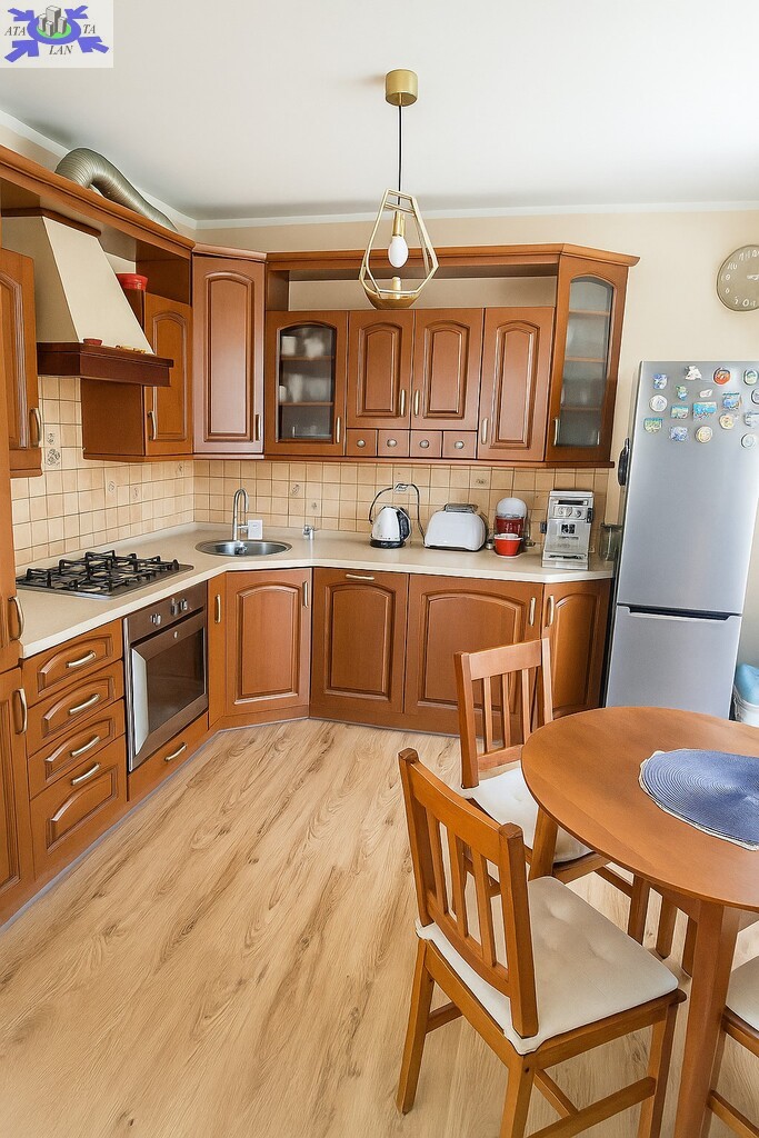 Na szczególną uwagę zasługuje przestronna, jasna kuchnia, z której prowadzi bezpośrednie wyjście do prywatnego ogródka. To miejsce idealne na poranną kawę, rodzinne śniadania w ciepłe dni czy wieczorny relaks w otoczeniu zieleni.