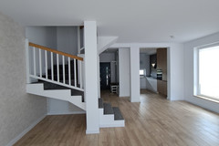 Dom składa się z salonu połączonego z kuchnią, toalety, dwóch pomieszczeń gospodarczych - na pierwszej kondygnacji. Drugą stanowią trzy sypialnie, garderoba oraz łazienka z wanną i kabiną prysznicową. Dodatkową powierzchnię stanowi strych, który z powodzeniem możemy wykorzystać do przechowywania. Całość wykończona w wysokim standardzie, użyto materiałów wysokiej klasy.