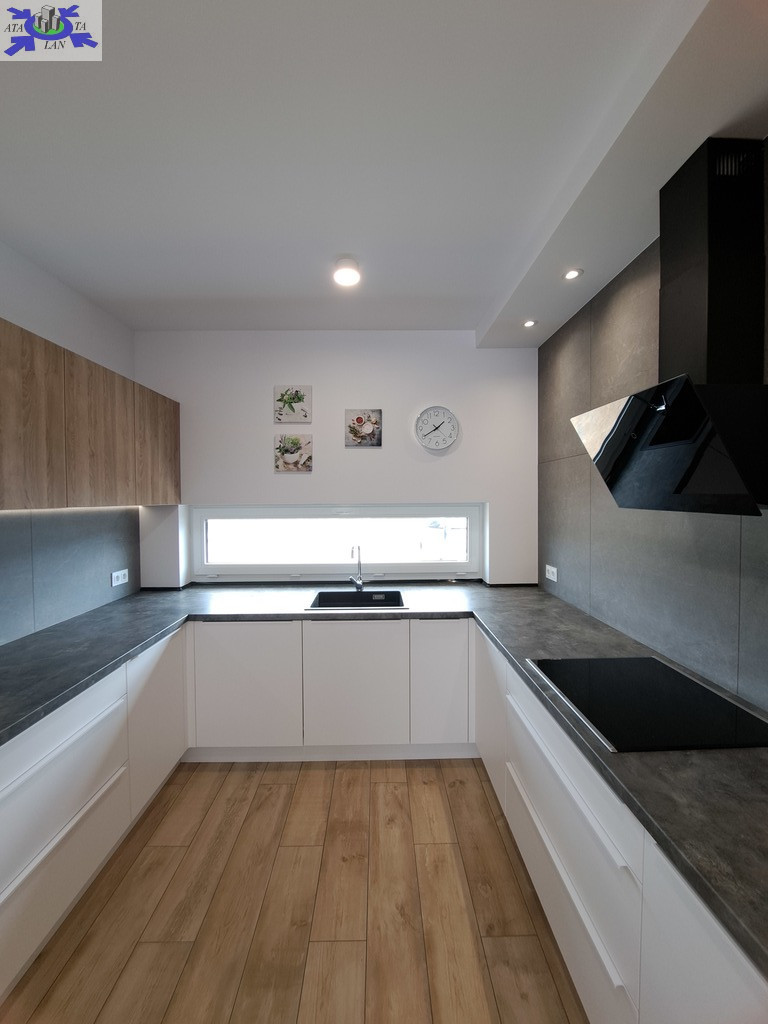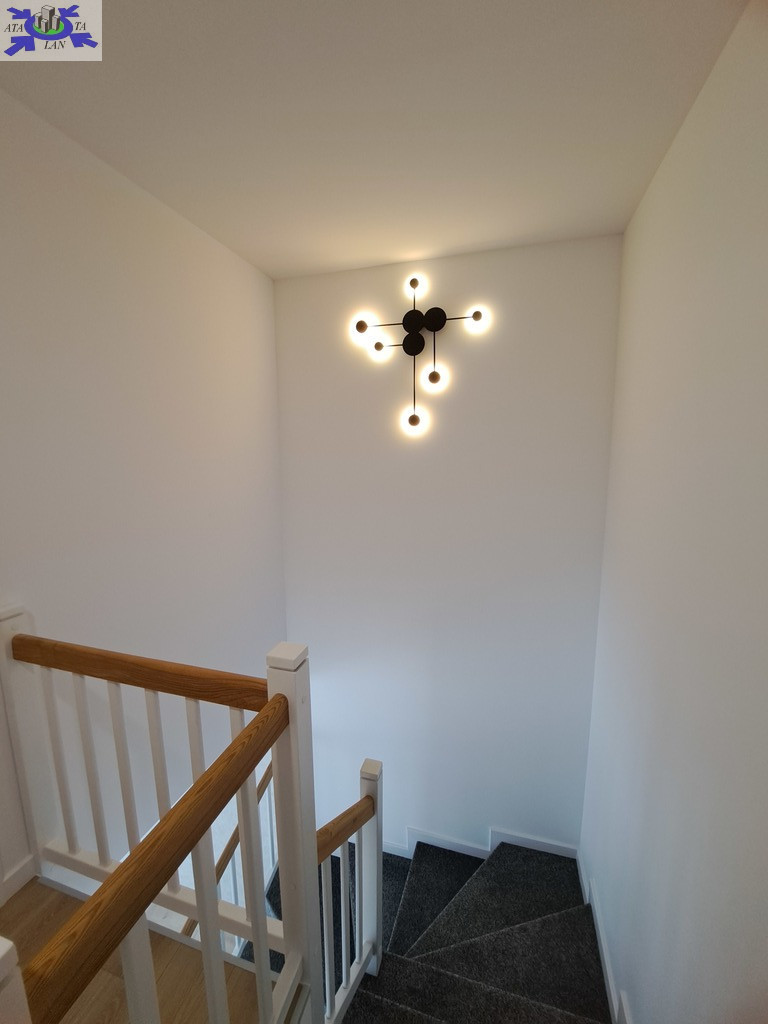 Dom składa się z salonu połączonego z kuchnią, toalety, dwóch pomieszczeń gospodarczych - na pierwszej kondygnacji. Drugą stanowią trzy sypialnie, garderoba oraz łazienka z wanną i kabiną prysznicową. Dodatkową powierzchnię stanowi strych, który z powodzeniem możemy wykorzystać do przechowywania. Całość wykończona w wysokim standardzie, użyto materiałów wysokiej klasy.
