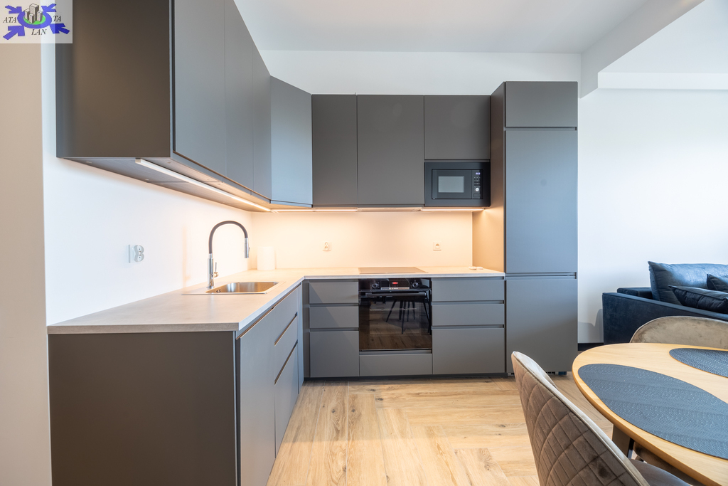 - nowoczesna kuchnia na wymiar z kompletnym sprzętem AGD lodówka, płyta indukcyjna, piekarnik, zmywarka - wszystko nowe i gotowe do użytku,