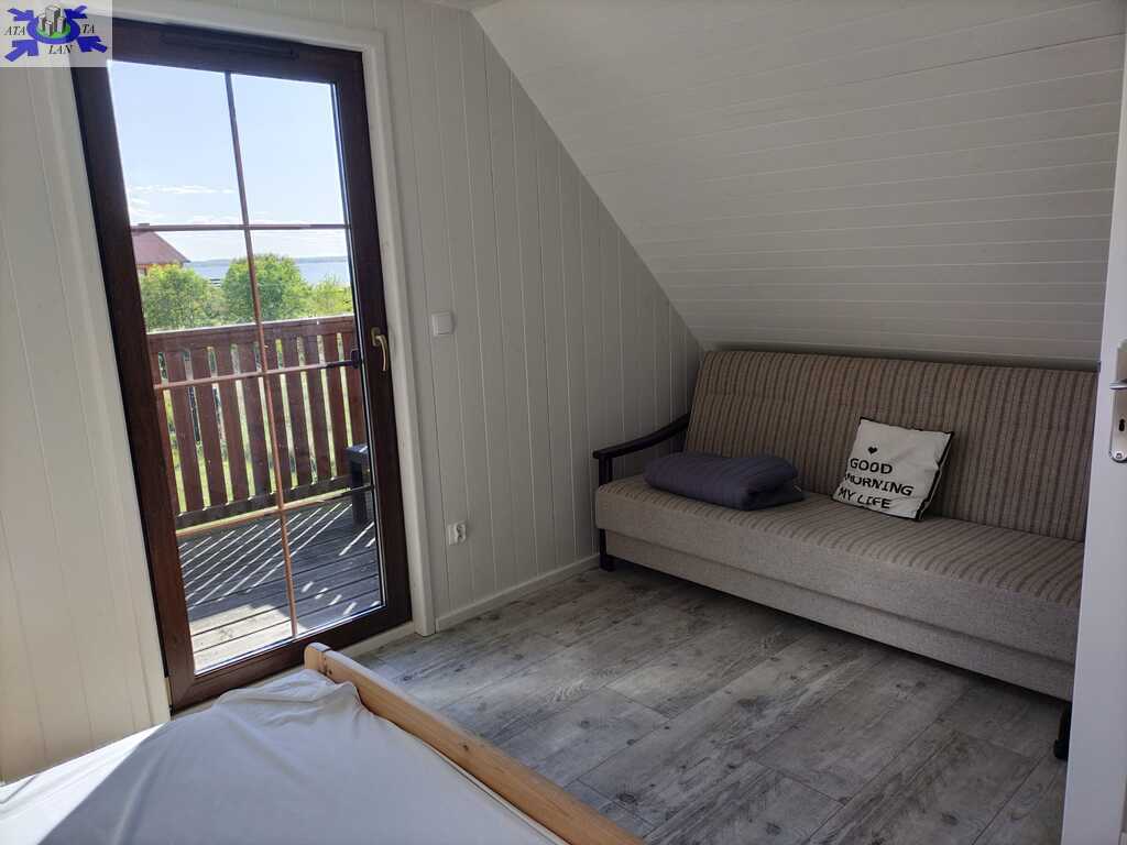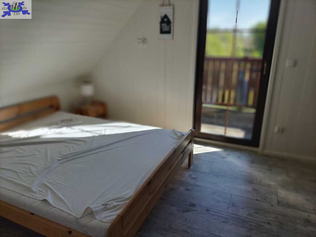 Powierzchnia całkowita domku to 85,44m2, użytkowa 46,96m2. Znajduje się on na działce o powierzchni 570m2, w całości ogrodzonej. Na parterze znajduje się salon z aneksem kuchennym, z miejscem na kącik jadalny, oraz łazienka. Z salonu wychodzimy na zadaszony taras. Na drugim poziomie znajdują się 2 pokoje. Z jednego wyjście na balkon z ładnym widokiem. Na terenie działki mamy grillowisko oraz zestaw huśtawek.