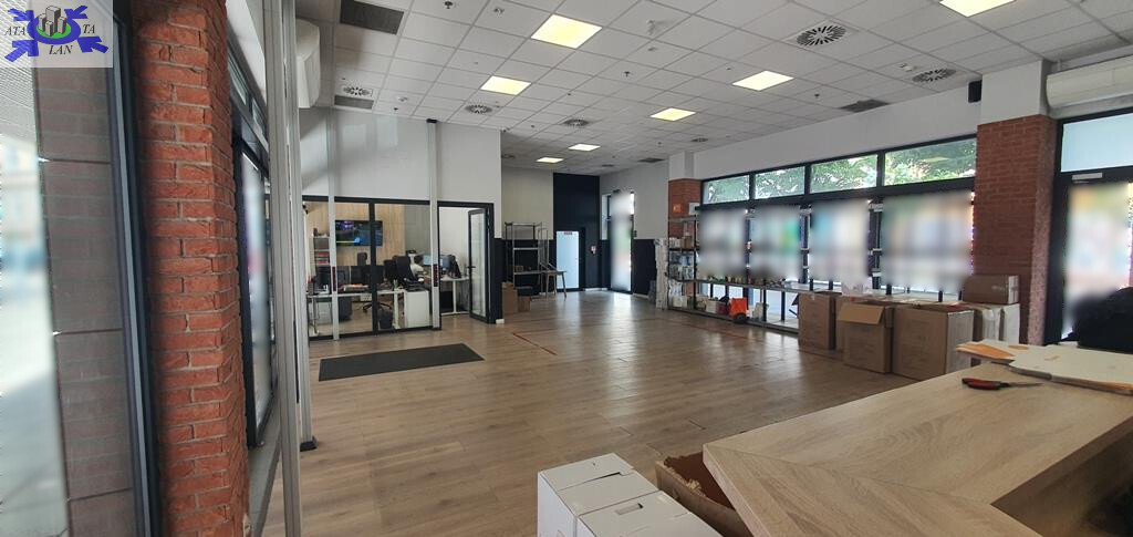 Wielkie witryny wystawowe do samej podłogi, dające bardzo dużo światła dziennego.