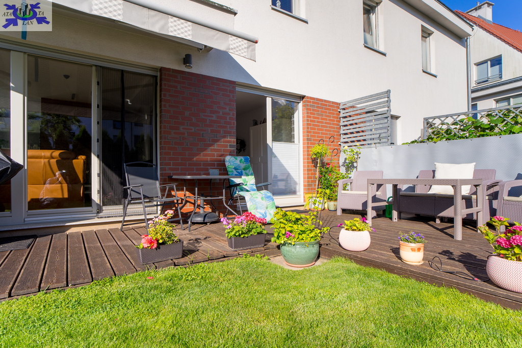 Do mieszkania przynależy ogród o pow. 180 m2, w którym znajduje się drewniana szopka na kosiarkę i narzędzia ogrodowe.