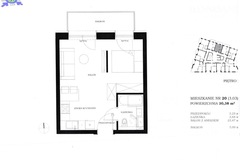 OPIS MIESZKANIA mieszkanie 1 pokojowe o powierzchni 30,38 m2, z wyjściem na balkon o powierzchni 5 m2. Pokój z aneksem kuchennym o powierzchni 23,47 m2, łazienka 3,68 m2, przedpokój 3,23 m2. Balkon od strony północnej o powierzchni 5 m2. II piętro w V piętrowym budynku z windą. Wystawa okien północno - wschodnia.