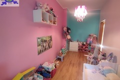 W pokojach na podłogach panele, ściany gładzone i pomalowane.
