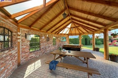 Pensjonat otoczony jest dużym, zadbanym ogrodem z licznymi nasadzeniami, który zapewnia gościom miejsce do relaksu oraz odpoczynku na świeżym powietrzu. Dodatkowo, na terenie obiektu znajduje się przestronna altana, która może pomieścić około 70 osób - doskonałe miejsce do organizacji eventów, przyjęć czy spotkań integracyjnych.