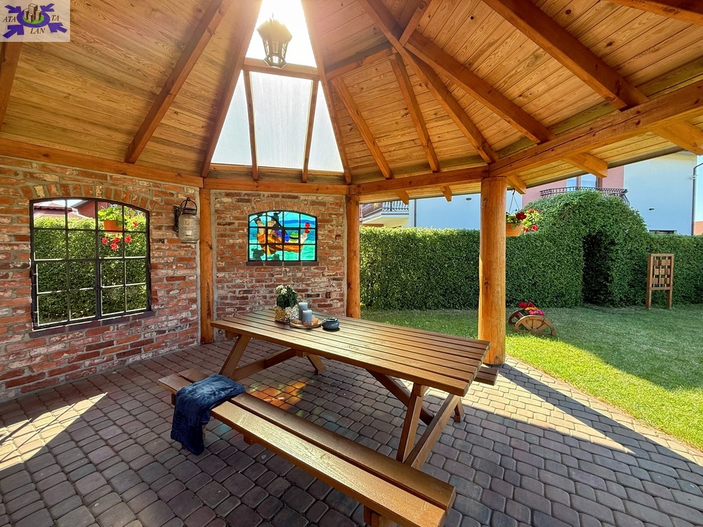 Pensjonat otoczony jest dużym, zadbanym ogrodem z licznymi nasadzeniami, który zapewnia gościom miejsce do relaksu oraz odpoczynku na świeżym powietrzu. Dodatkowo, na terenie obiektu znajduje się przestronna altana, która może pomieścić około 70 osób - doskonałe miejsce do organizacji eventów, przyjęć czy spotkań integracyjnych.