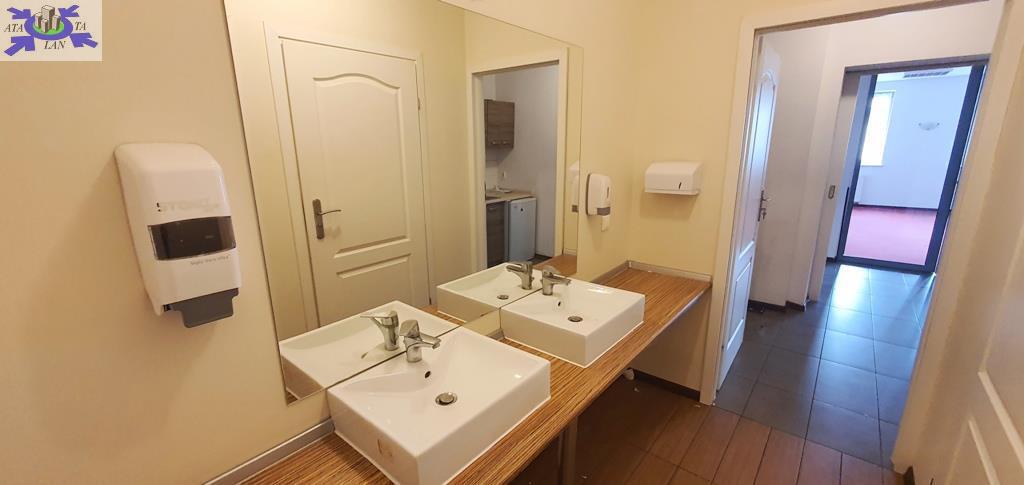 Na podłogach wykładzina i kafle, ściany i sufity gładzone, malowane, oświetlenie rastrowe. Łazienka z WC w eleganckim stylu. Okna nowego typu, otwierane, PCV.