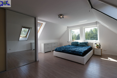 Pietro sypialnia główna o powierzchni 27,5 m2 wyposażona jest w duże, komfortowe łóżko oraz pojemną szafę w zabudowie.