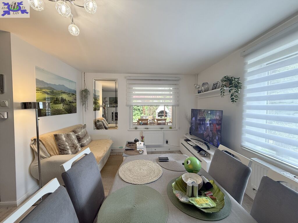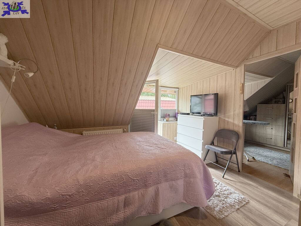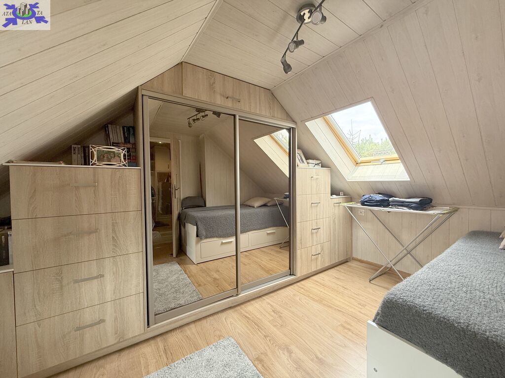 Na podłogach w salonie, kuchni, przedpokoju i wiatrołapie położone są panele, ściany są wygładzone i pomalowane. Na poddaszu w sypialniach na podłogach panele, ściany wygładzone i pomalowane. Łazienka z wc w glazurze i terakocie.