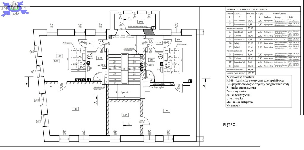 Nowe instalacje Całkowicie nowa instalacja elektryczna (trójfazowa w każdym mieszkaniu), wodno-kanalizacyjna oraz internetowa.