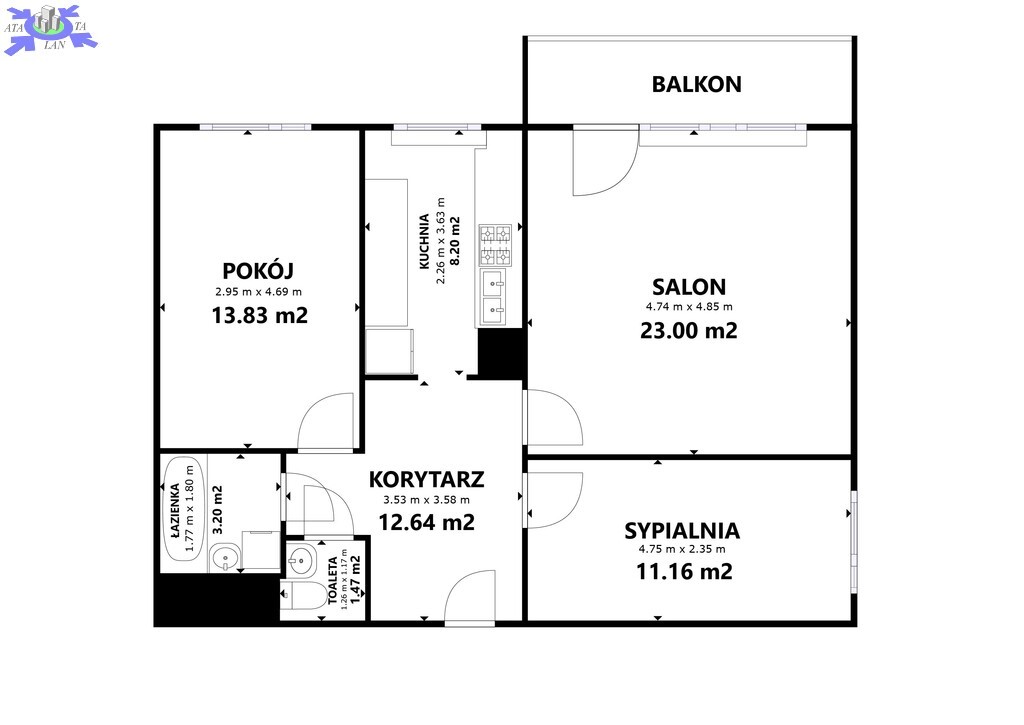 - dużego pokoju dziennego z balkonem