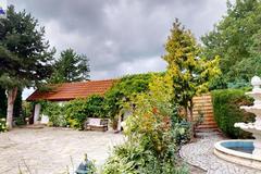 Dom otoczony jest przepięknym ogrodem, liczne nasadzenia, krzewy, oczko wodne, w pełni zautomatyzowany system nawadniania. Na terenie posesji znajduje się również domek gościnny (salon z aneksem kuchennym plus dwie sypialnie, łazienka z wc), sauna i jacuzzi. Standard pomieszczeń - foto.
