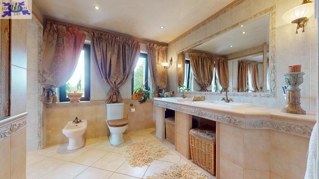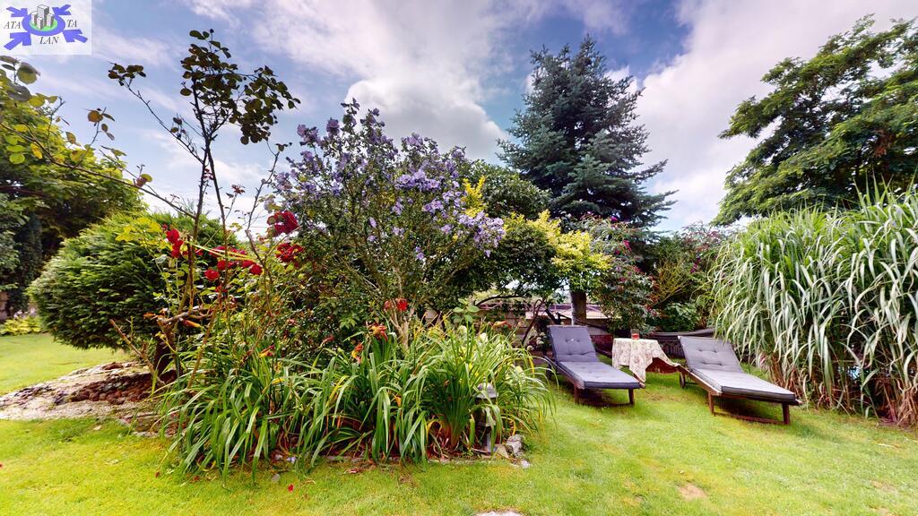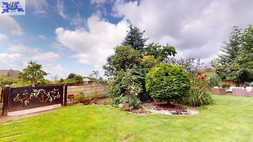 Dom otoczony jest przepięknym ogrodem, liczne nasadzenia, krzewy, oczko wodne, w pełni zautomatyzowany system nawadniania. Na terenie posesji znajduje się również domek gościnny (salon z aneksem kuchennym plus dwie sypialnie, łazienka z wc), sauna i jacuzzi. Standard pomieszczeń - foto.