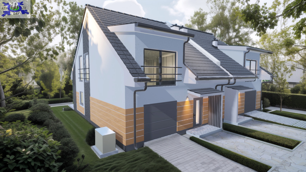 Bliźniak o powierzchni użytkowej 135 m2. (powierzchnia całkowita - 148,7 m2) posadowiony na działce o powierzchni około 350 m2.