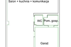 -Parter ok. 76,7 m2 (salon, kuchnia, wiatrołap, toaleta, garaż).