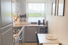 W cenie mieszkania zabudowa mebli z AGD w kuchni oraz zabudowa szafy w przedpokoju.