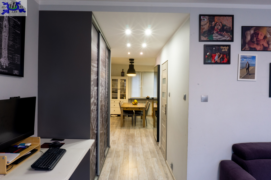 Mieszkanie pierwotnie było 4 pokojowe. Na tą chwilę kuchnia została połączona z jednym pokojem co tworzy wygodną przestrzeń. Można wrócić do pierwotnego stanu.