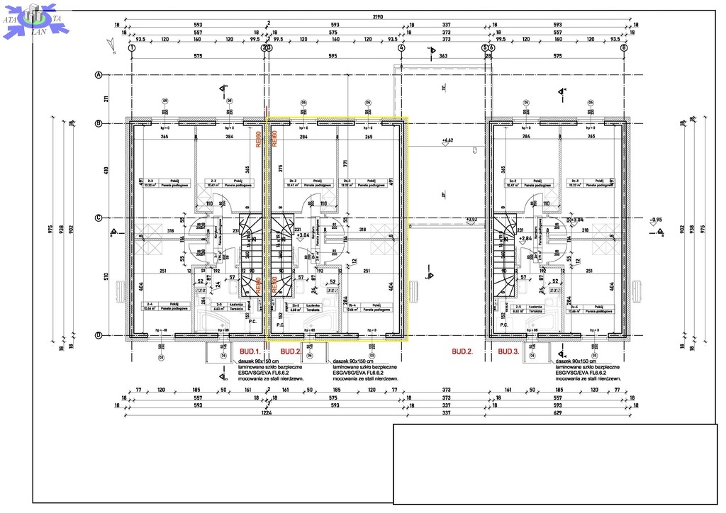 Budynek o powierzchni 93,2 m2 z dużym salonem z aneksem kuchennym, miejscem na jadalnię, 3 sypialniami i 2 łazienkami, a także strychem jako pomieszczeniem magazynowym (podłoga z płyt OSB, właz z drabinką). Do segmentu przynależy garaż o powierzchni 20,3 m2 oraz 1 miejsce postojowe przed garażem i ogródek.