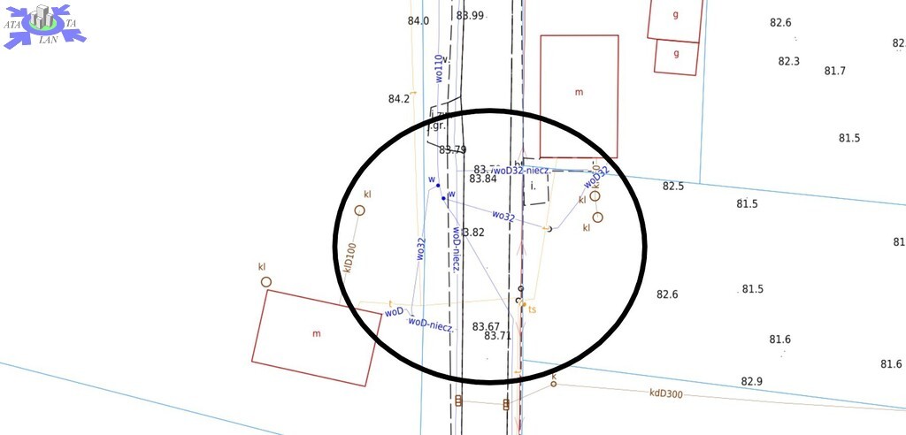 * Nachylenie płaska w okolicy domu i wzdłuż drogi (front działki), wznosząca się od połowy w kierunku dalszego krańca (tyłu).