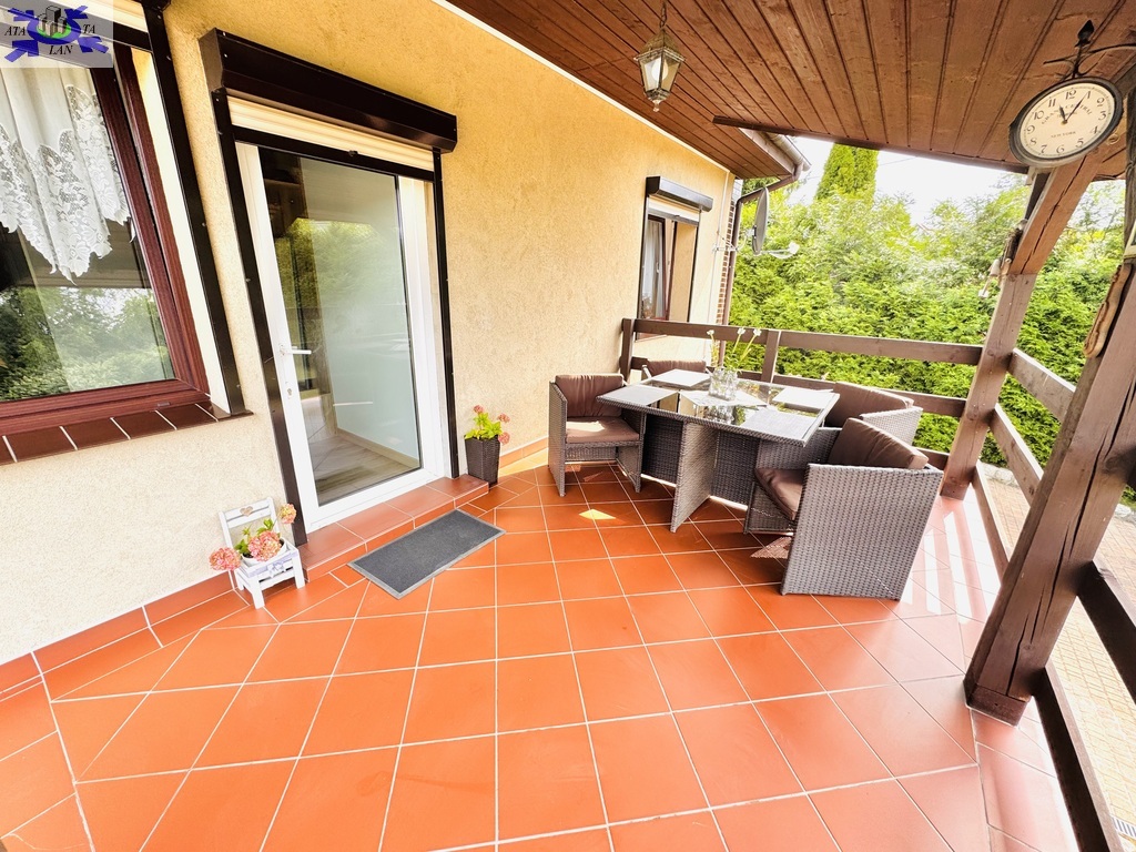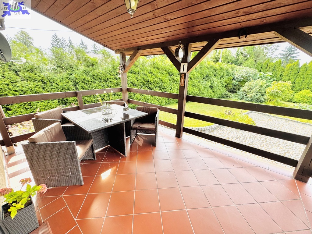 Nieruchomość zawiera dwa tarasy dolny (ok. 35 m2) oraz górny (zadaszony ok. 14 m2).