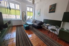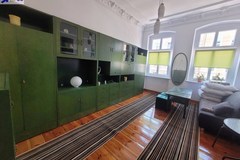 Śródmieście, okolice Placu Zgody. Duże mieszkanie ok. 100 m2 zlokalizowane na drugim piętrze zadbanej kamienicy. Nowa elewacja, klatka schodowa po remoncie, zadbane zielone podwórko. Mieszkanie zostało podzielone na 3 samodzielne kawalerki, każda z kuchnią i łazienką. WC wspólne z wejściem z przedpokoju. Ogrzewanie i ciepła woda z pieca gazowego zamontowanego w przedpokoju. Piec gazowy nowy, nowe instalacje, na ścianach tynki gładzone malowane, na podłogach deska sosnowa. Każda kawalerka ma około 28 m2. Dostępna do wynajęcia jest jedna z nich - zielonymi meblami - pokój 18 m2 i odrębną kuchnią z oknem połączoną z łazienką. W kuchni szafki kuchenne w zabudowie, zlewozmywak jednokomorowy, kuchenka z płytą elektryczną i piekarnikiem elektrycznym, okap, lodówka, pralka, kabina prysznicowa. Koszt najmu wynosi 1700 zł/m-c plus 300 zł koszty czynszu do wspólnoty /woda, internet, telewizja, wywóz śmieci, sprzątanie klatek schodowych/ plus opłaty za gaz i prąd wg. zużycia. Kaucja wynosi 2000 zł.