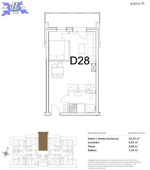 - pokoju dziennego z aneksem kuchennym o pow. 26,25 m2