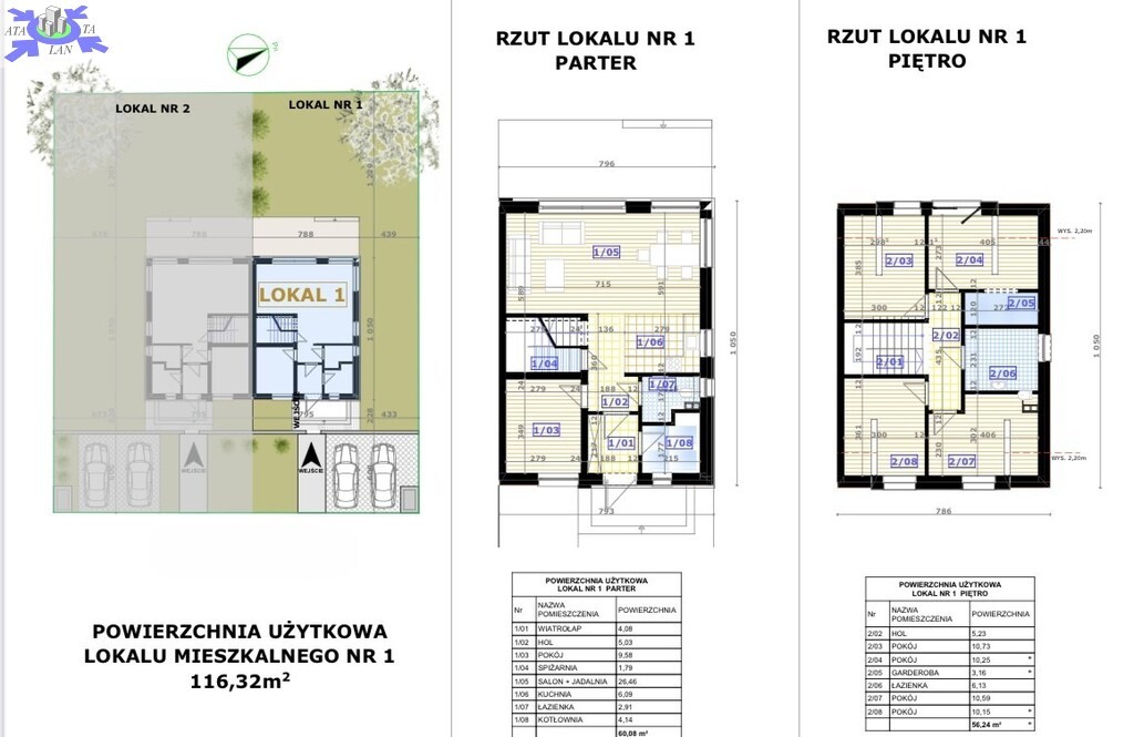 Każdy lokal będzie miał do wyłącznego korzystania ogród o powierzchni ok. 210 mkw oraz dwa miejsca postojowe!