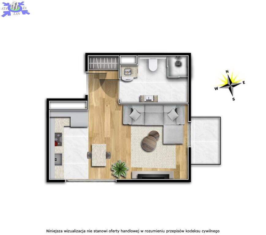 Ofertę stanowi lokal apartamentowy (w stawce 23%), o powierzchni 26,06 m2, usytuowany w parterze, składający się z salonu z aneksem kuchennym i łazienki, balkon 1,79 m2.