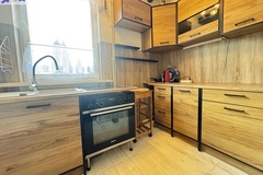 Media doprowadzona woda, energia elektryczna, ścieki (zamknięty zbiornik). W domku na górze zrobiono łazienkę z podłączoną bieżącą wodą i podgrzewaczem elektrycznym. Na parterze salon z kominkiem i oddzielna kuchnia.