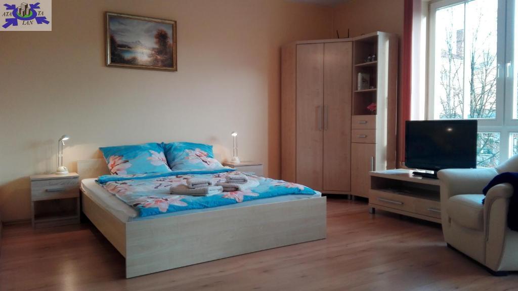 Piękna i przestronna kawalerka znajdująca się w nowym apartamentowcu na Starym Mieście. Budynek został wybudowany w 2005 roku. Mieszkanie znajduje się na 4-piętrze, w budynku jest komfortowa winda. Wszystkie apartamenty w budynku przewidziane są pod wynajem. Pokój jest z aneksem kuchennym, przestronny z wyjściem na balkon. W pokoju są wszystkie meble (wypoczynek z fotelami, stół, szafka pod telewizor, telewizor, biurko) Łazienka przestronna i wykończona jasną glazurą i terakotą, kabina prysznicowa, umywalka, muszla oraz pralka. Drzwi wejściowe do mieszkania antywłamaniowe, wewnętrzne drewniane wysokiej klasy.