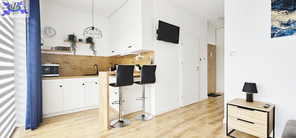 Apartament wykończony materiałami wysokiej jakości. W cenie może pozostać wyposażenie widoczne na zdjęciach, apartament przystosowany dla 4 osób, 2 rozkładane sofy z powierzchnią spania Na powierzchnię 33,4m2 składa się