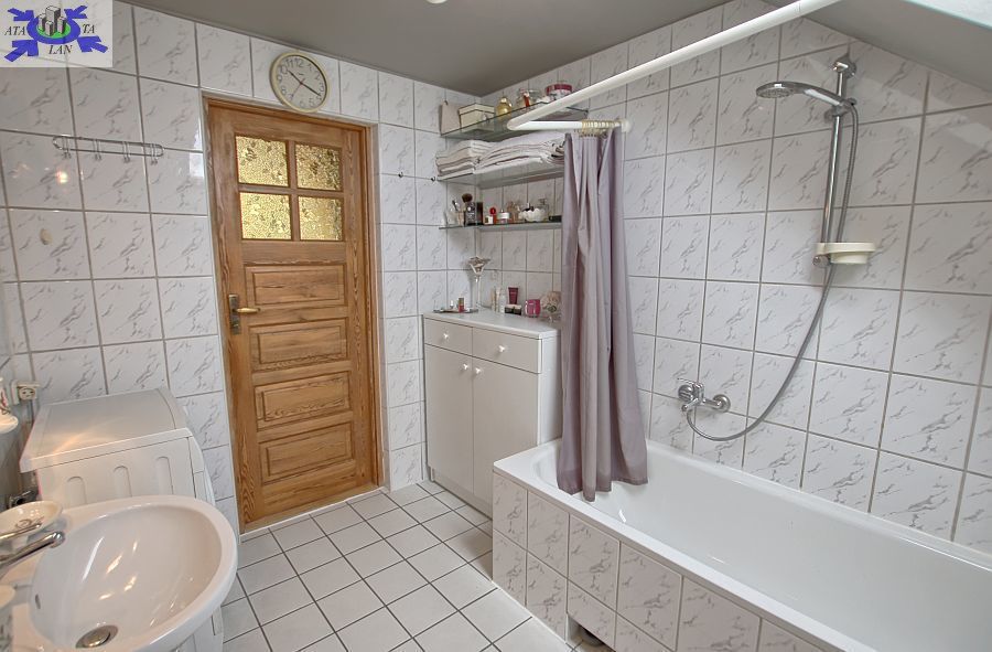 W salonie, sypialniach i kuchni na podłodze jasna deska barlinecka, ściany wygładzone i pomalowane. Łazienka z wanną w glazurze i terakocie.