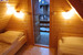 Piętro domku to część sypialna. Znajdują się tam sypialnia zamykana z wyjściem na balkon oraz otwarta przestrzeń sypialniana przy wejściu na schody.