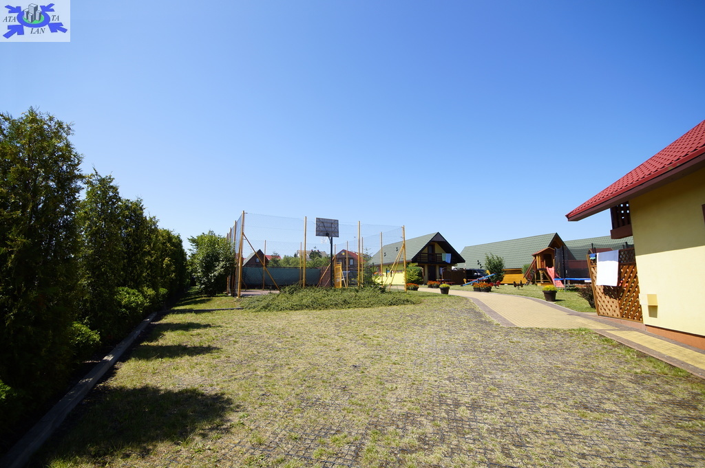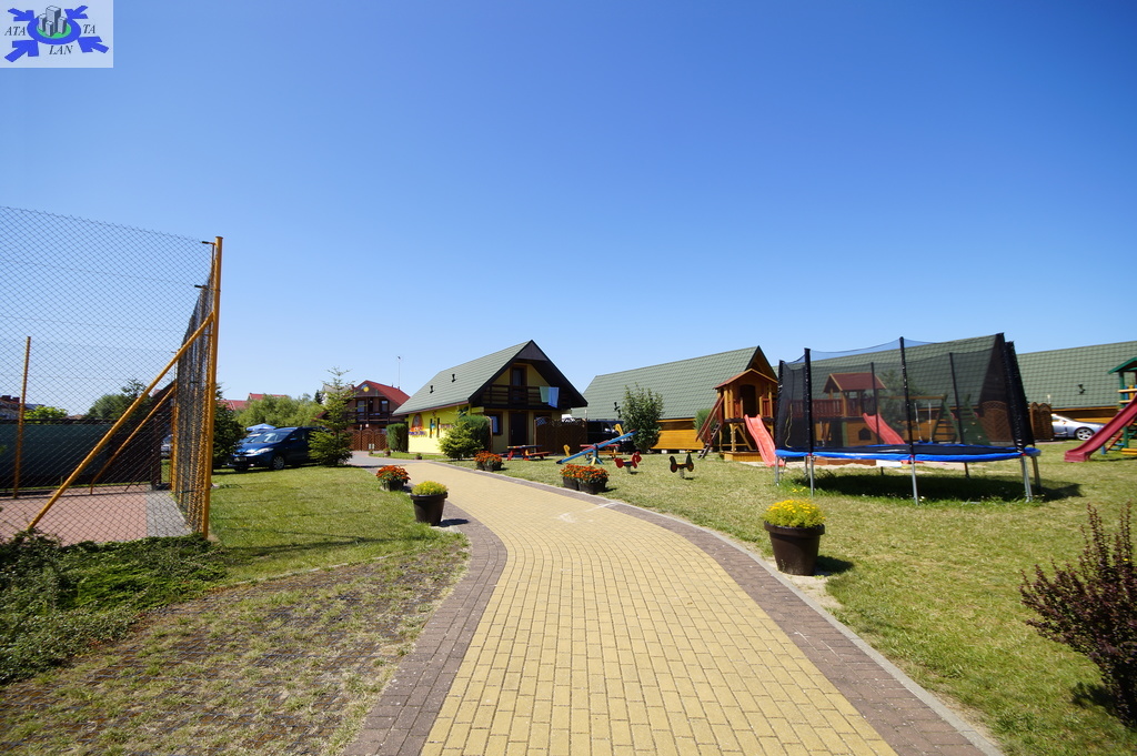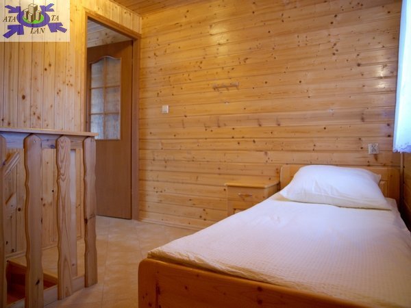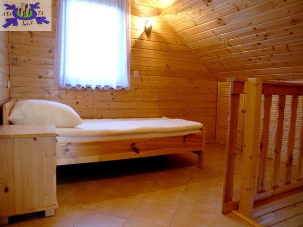 Piętro domku to część sypialna podzielona na dwie części. Jedna z nich jest zamknięta, wyposażona w łóżka drewniane z materacami sprężynowymi. Z tej sypialni jest wyjście na balkon. Druga sypialnia to część otwarta (przy wejściu na schody), w której także znajdują się łóżka drewniane z materacami sprężynowymi oraz szafka nocna. Na terenie obiektu znajdują się także parking, plac zabaw dla dzieci, boisko mały ogródek z miejscem do grillowania na własnym grillu oraz plac zabaw z huśtawkami, drabinkami, trampoliną i piaskownicą. Znajdziemy tam zestaw do gry w koszykówkę, a także innych sportów. Dodatkowo obok boiska znajduje się stół do gry w ping-ponga